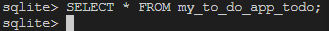 - 이제 해당 테이블 안에 어떠한 데이터가 있는지 확인해보겠습니다. SELECT * FROM my_to_do_app_todo;