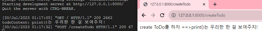 return HttpResponse("create ToDo를 하자 ==>" + user_input_str)