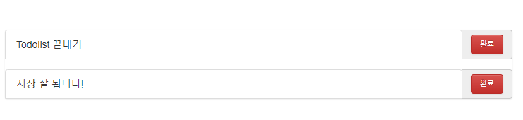 이번에는 빨간색의 '완료'버튼을 눌렀을 때 해당 Todo를 사라지게 하겠습니다. 각각의 Todo를 구별하는 건 데이터베이스에서 테이블을 만들때 자동으로 부여되는 id(PK라고도 함)를 이용하면 됩니다.