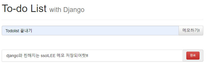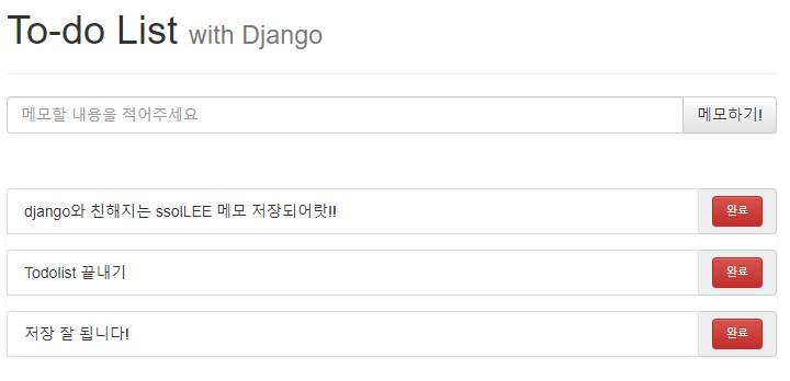 - terminal에 python manage.py runserver를 입력하여 웹 페이지를 확인합니다. 그리고 메모도 입력해보세요.
