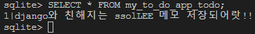 - 그리고 SELECT * FROM my_to_do_app_todo;을 입력합니다.