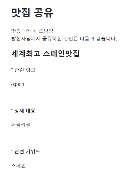 mail_html += "발신자님께서 공유하신 맛집은 다음과 같습니다.</p>"