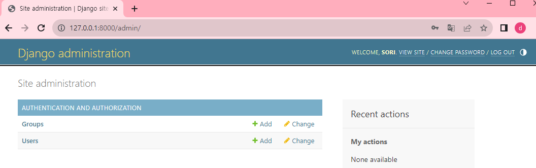 - superuser는 시스템 관리자입니다. 이제 관리자로 로그인을 해보겠습니다.