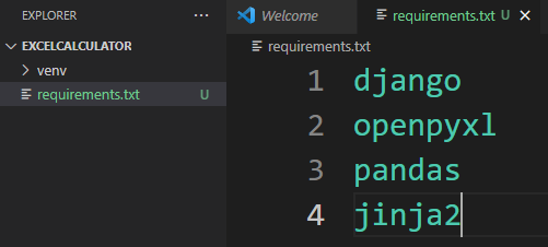- requirements.txt를 생성하고, 다음을 입력한 후 저장합니다.
