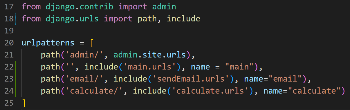 - ExcelCalculate > main > urls.py 으로 이동한 후에 코드를 입력합니다.