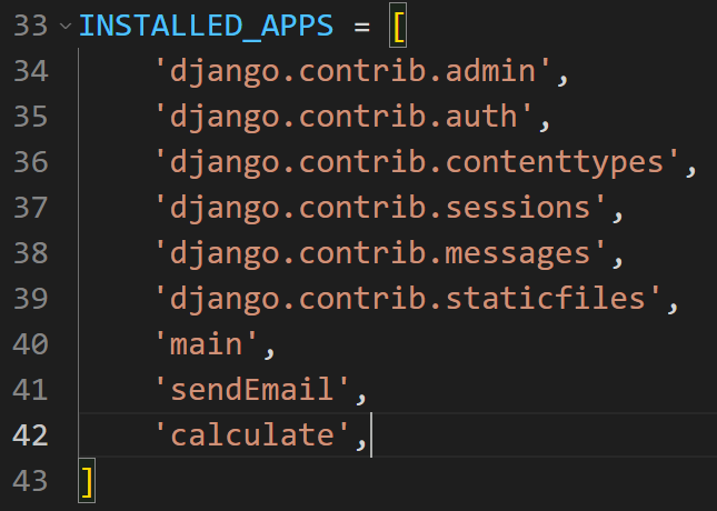 - ExcelCalculate > ExcelCalculate > settings.py 로 이동한 후 다음과 같이 app을 등록합니다.