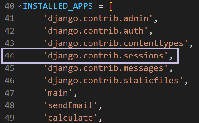 - ExcelCalculate > settings.py로 이동합니다. 다음 표시된 것이 있으면 됩니다. 없으면 추가해주세요.