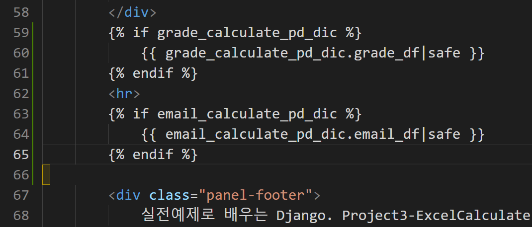 - ExcelCalculate > main > tempaltes > main > result.html 로 이동하여 40~45번째 줄을 지우고 다음 코드를 붙여넣습니다.