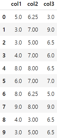 - data를 데이터프레임으로 바꾸겠습니다. 이때 컬럼명은 col1, col2, col3로 설정하겠습니다.