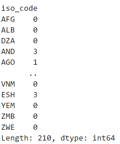 - covidtotals의 인덱스를 iso_code 열로 설정하겠습니다.