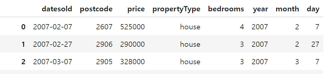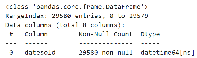 - 'datesold'의 데이터타입이 object로 나와있습니다. 이것을 datetime으로 바꾸겠습니다.