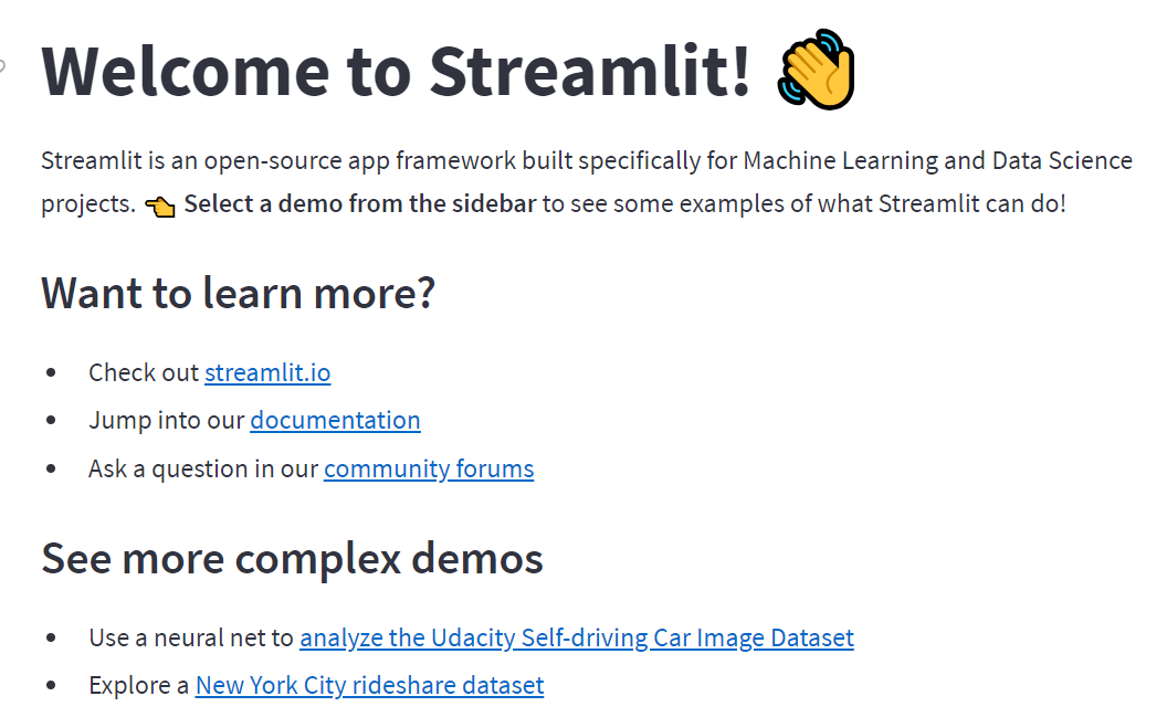 - Streamlit이 잘 작동하고 있음을 확인했습니다. 브라우저 창에서 보이는 것처럼 멋진 나의 대시보드를 우리도 만들 수 있겠죠!
