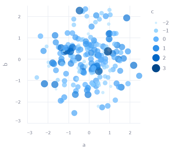 x='a', y='b', size='c', color='c', tooltip=['a', 'b', 'c'])