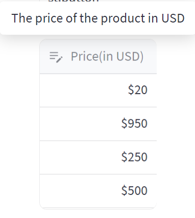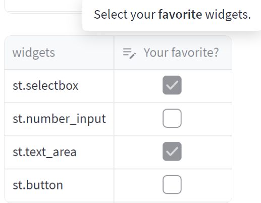 - st.column_config 클래스는 데이터 표현이나 상호작용을 구성하는 강력한 도구입니다.