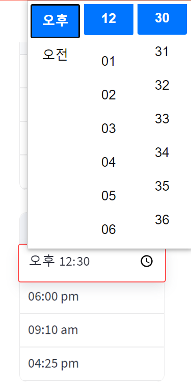 - Y, M, D, h, m의 갯수로 자릿수를 나타낼 수 있습니다. 각 행을 누르면 달력도 나타납니다.