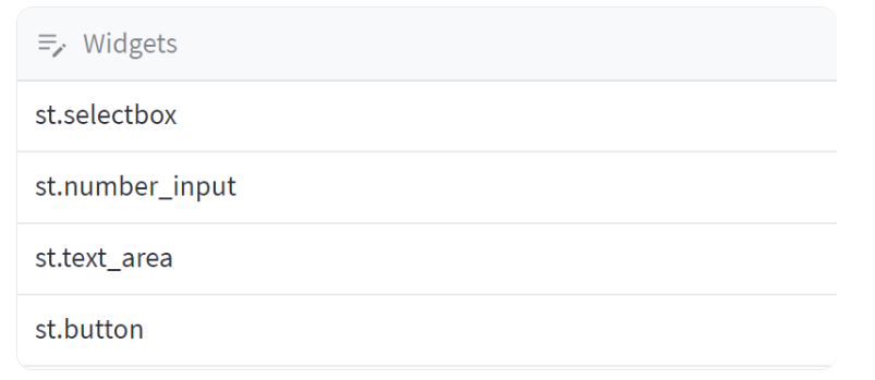 "widgets" : ["st.selectbox", "st.number_input", "st.text_area", "st.button"]