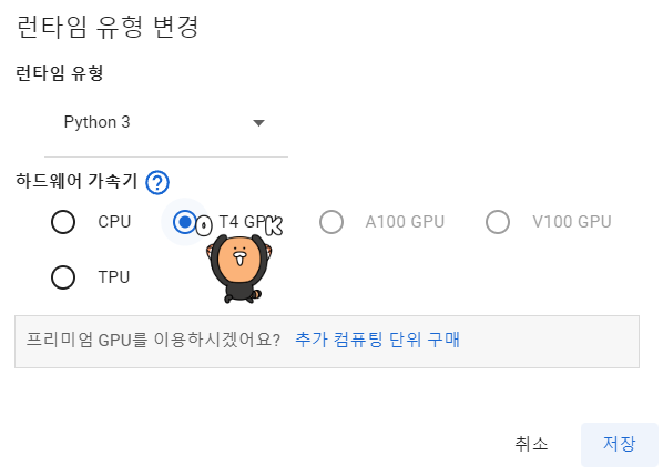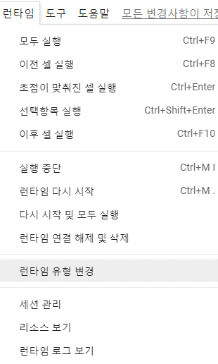 - 하기전에 항상 다음과 같이 세팅을 GPU로 바꿔주세요.
