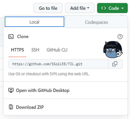 2. github에서 web URL 복사(나중에 저장하면 이 곳에 남습니다!!)