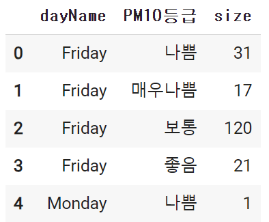 - 일자별 각 PM10등급의 빈도수 파악하기