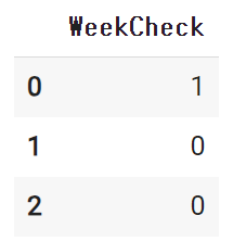 df['WeekCheck'] = df['weekday'].map(lambda x : 1 if x in [5, 6] else 0)