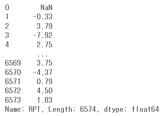- RPT 컬럼의 값을 일자별 기준으로 1차 차분하기
