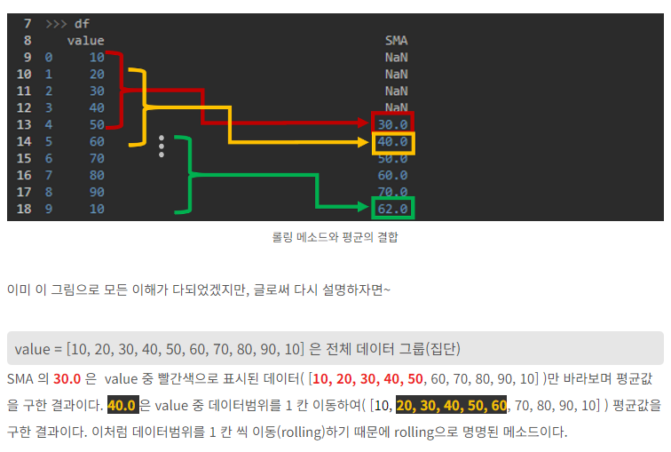 - 아래 캡쳐한 것은 rolling 메서드에 대해 잘 설명해준 블로그(https://amatoroi.tistory.com/23)에서 가져왔습니다.