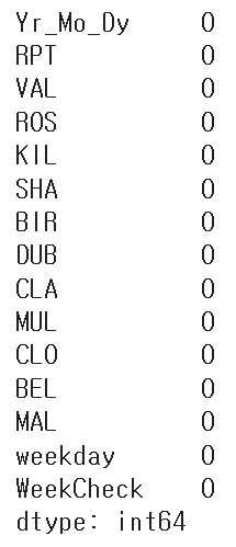 - 시간이 연속적으로 존재하며 결측치가 없는 지 확인하기