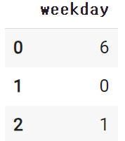 - weekday 컬럼을 만들고 요일별로 매핑하기(월 : 0 ~ 일 : 6)