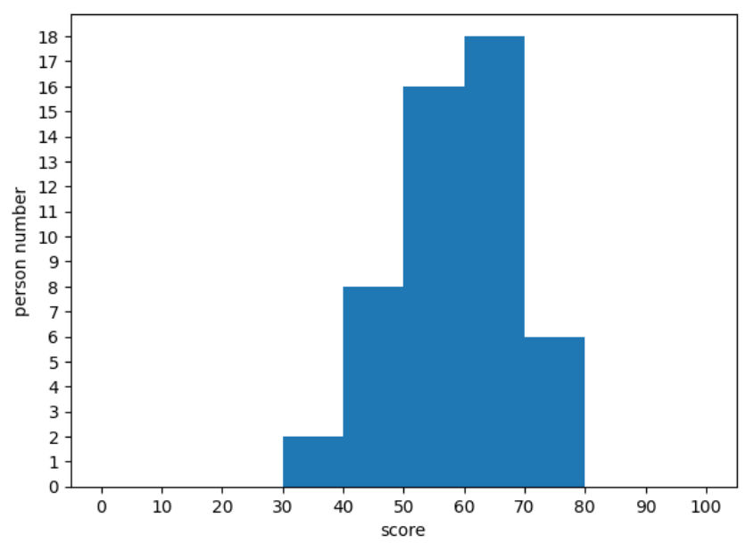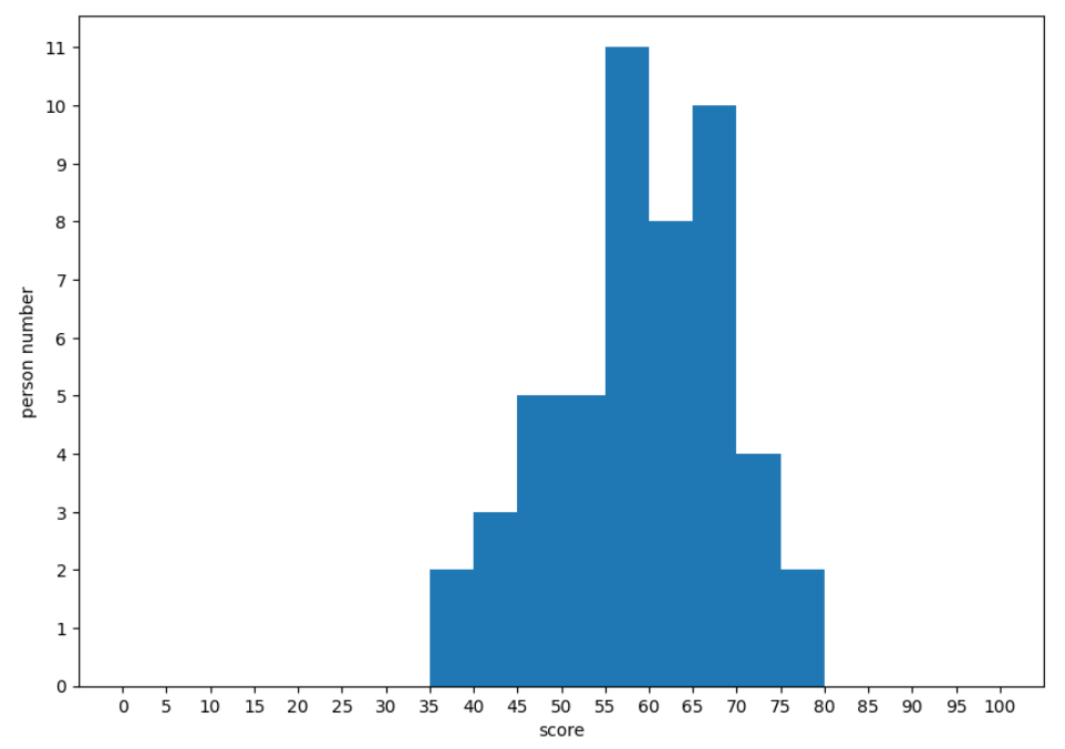 - 대체적으로 점수가 60점 전후에 많이 모여 있다는 것을 알 수 있네요.